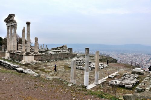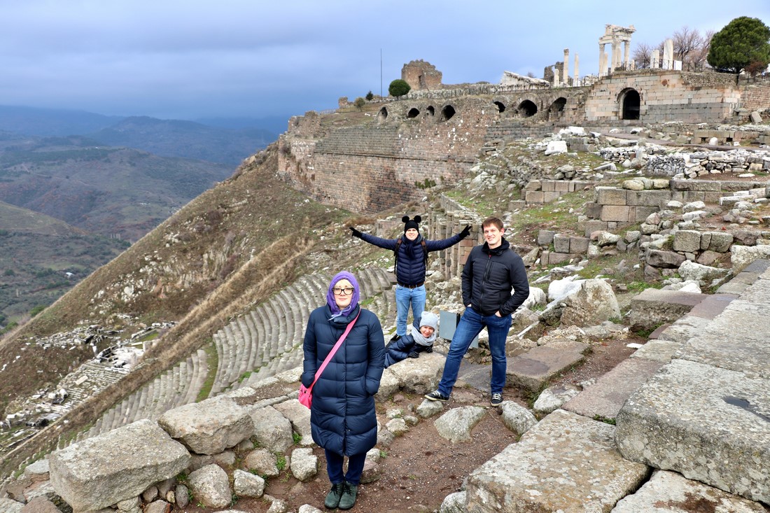Утром поднялись в акрополь старинного города Пергам. Мы туда ехали на машине, но желающие могут подняться и по канатной дороге: