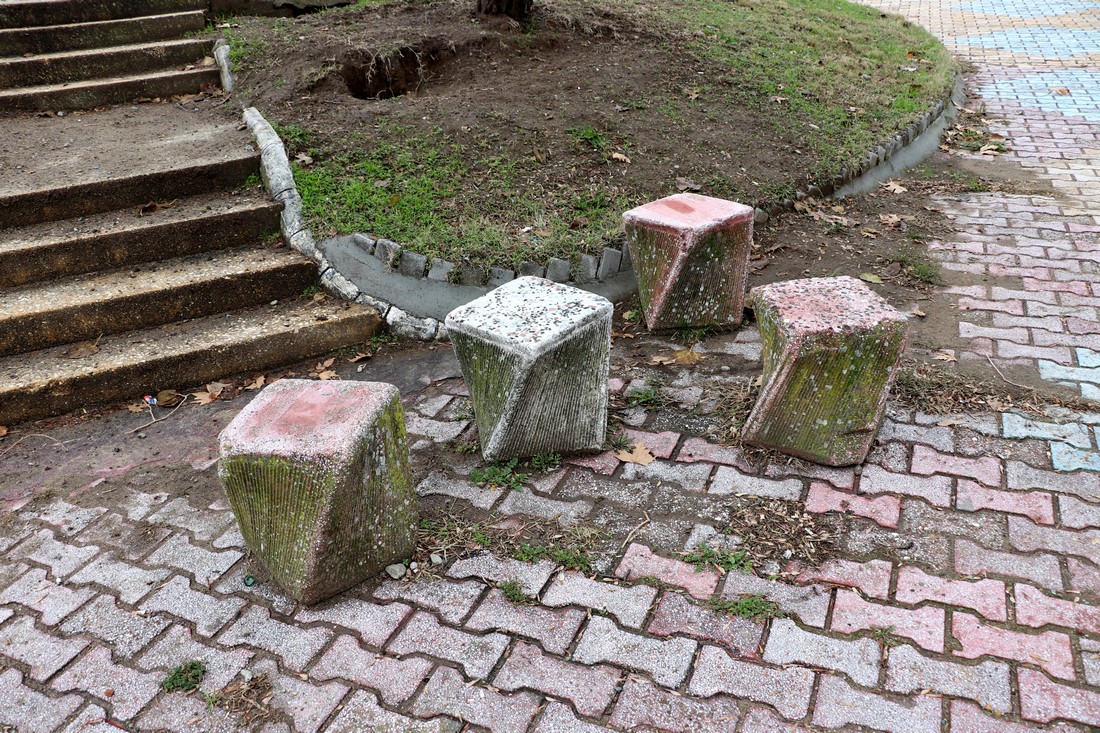 Сам город совершенно ничем не примечателен. Столбы на прогулочной улице: