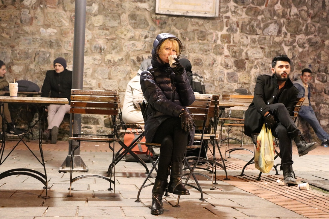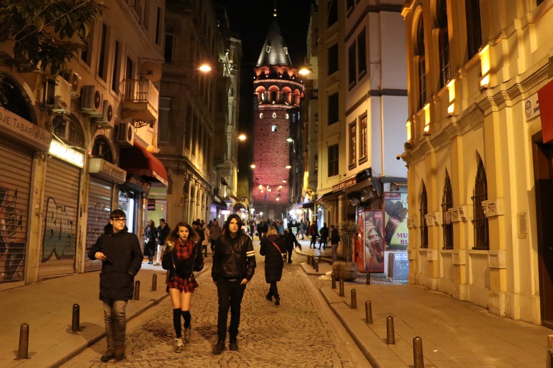 Нашу прогулку по центру начали с Галатской башни. Как видно по фотографии молодежь тут мало похожа на выходцев из мусульманской страны: