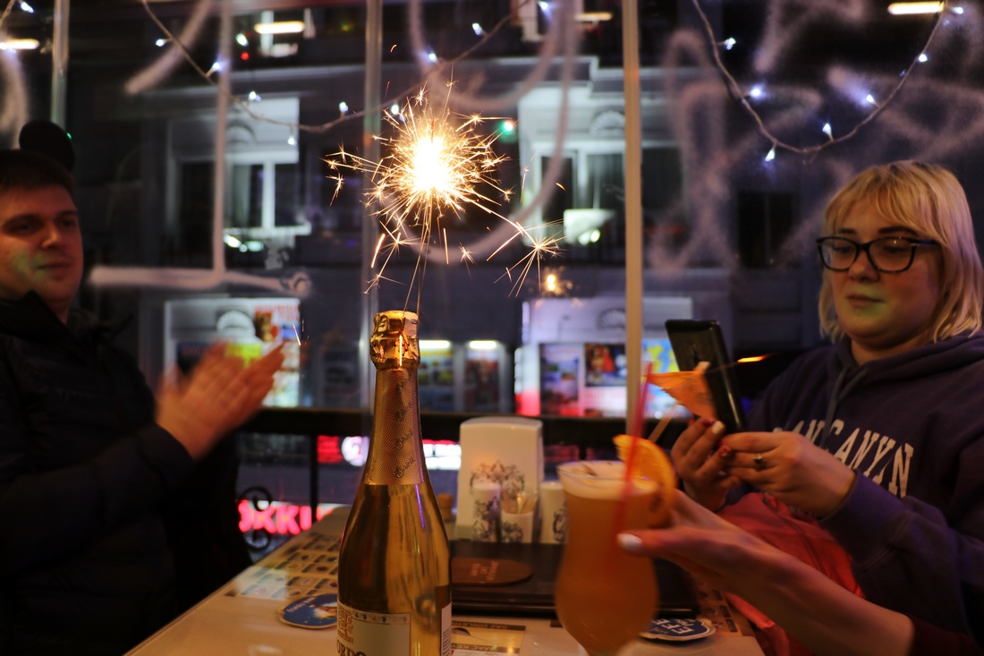 В общем, прогуляли мы практически до 12 часов, а это значит, что надо было найти место, где мы встретим Новый Год. В итоге нашли совсем крохотную кафешку, где за соседними столиками уже было подогретое местное население: