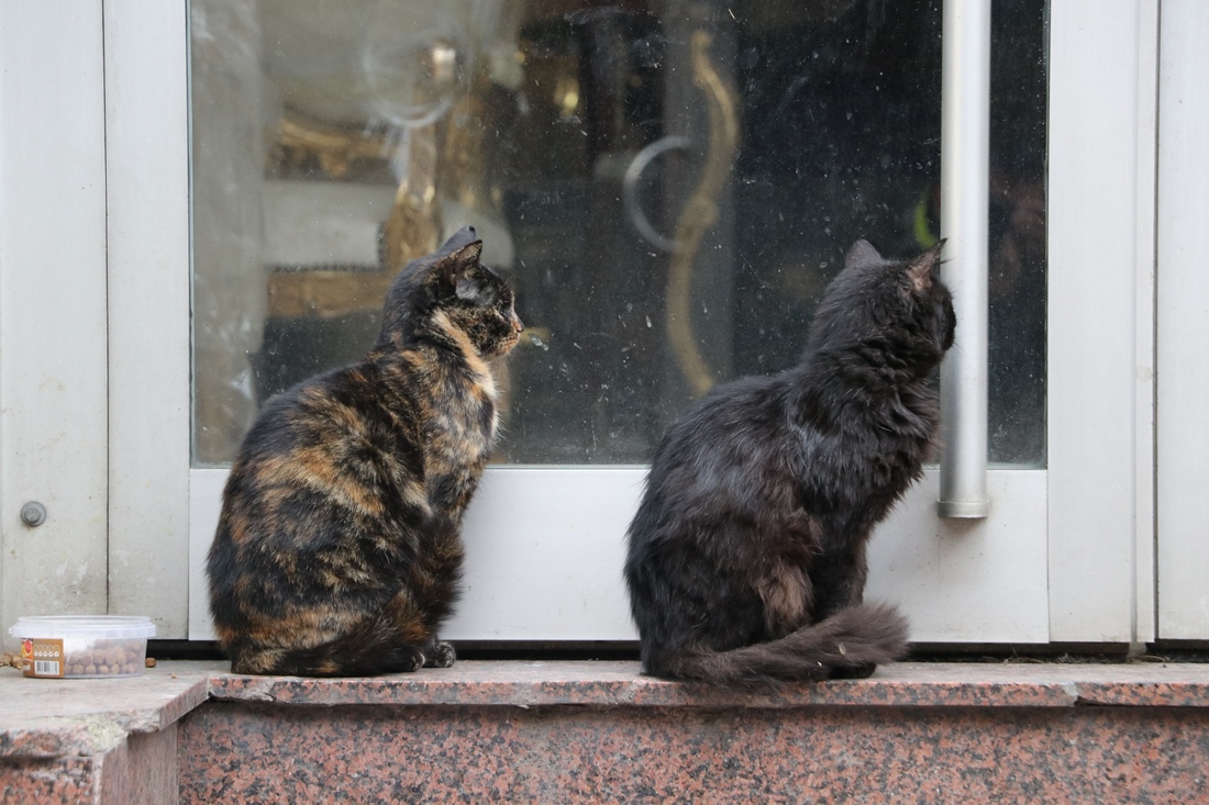 Кошаки смотрят, что происходит внутри: