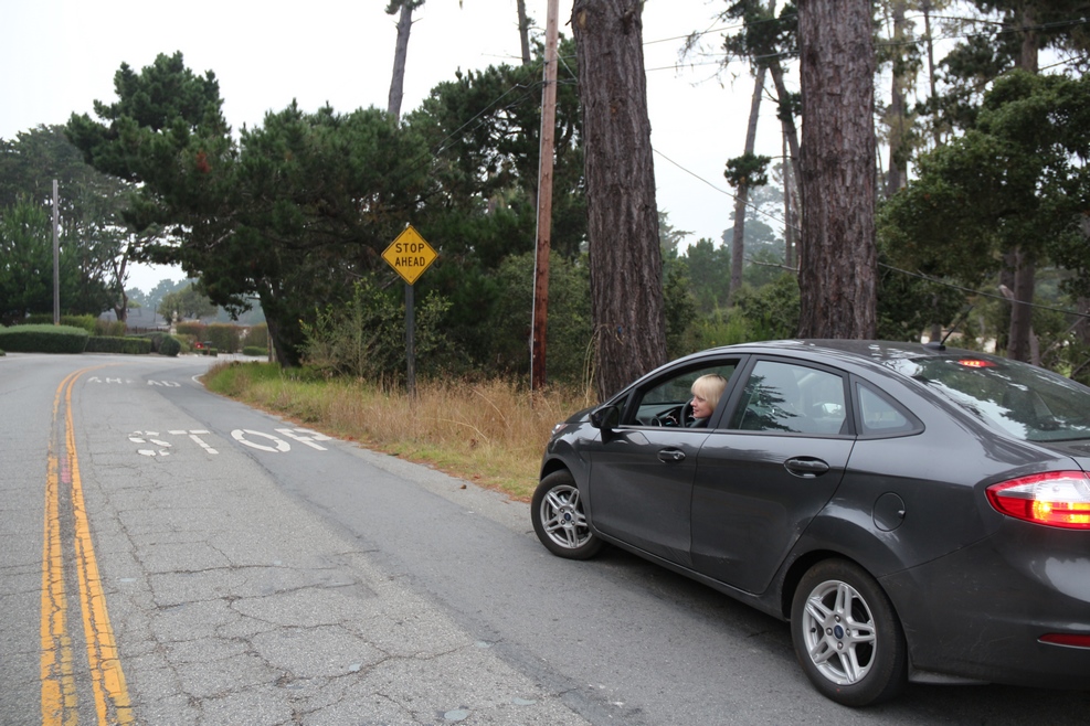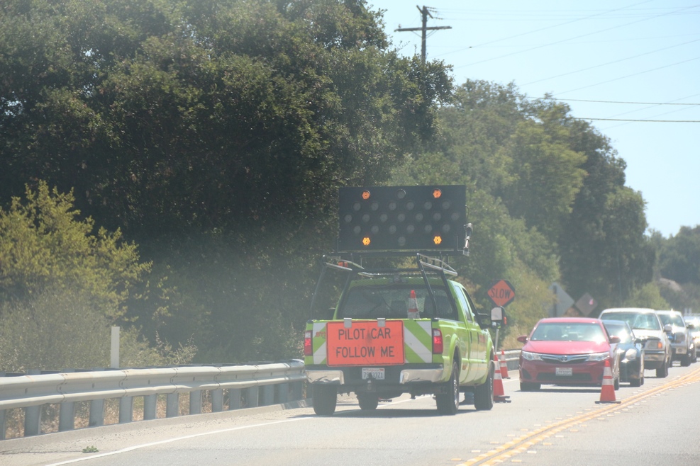 На одном из таких участков дороги недалеко от Санта-Барбары скорость участникам движения задавал пилотный автомобиль: