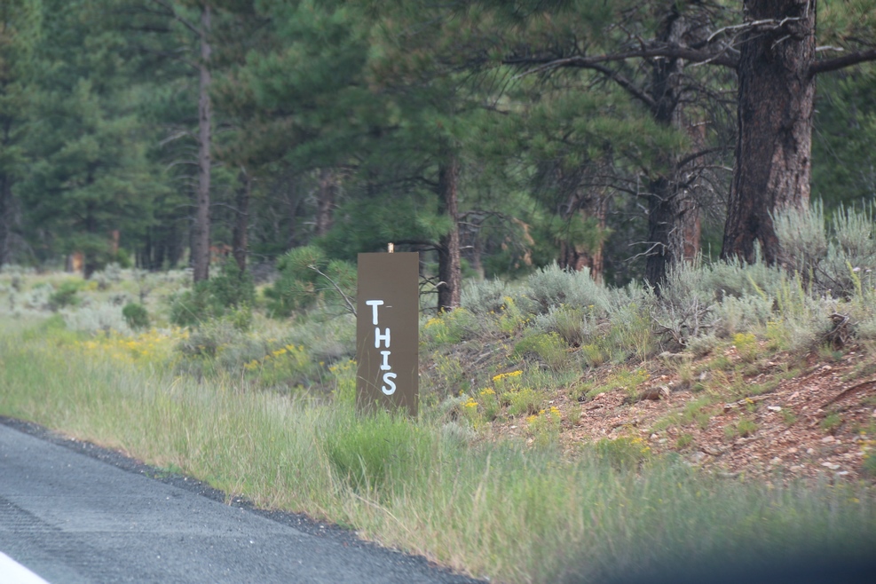 Еще для сосредоточения внимания водителя мы видели такую вещь. На равных промежутках друг от друга стоят щиты. На каждом из них написано по одному слову из связанного предложения. В результате проезжая несколько сот метров, можно прочитать все предложение целиком. Вот для примера пару щитов на которых написана частичка большого предложения (Переводится как «…этот выходной…»):