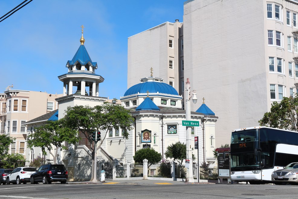 Утром выезжаем из города. По пути проехали мимо русской православной церкви: