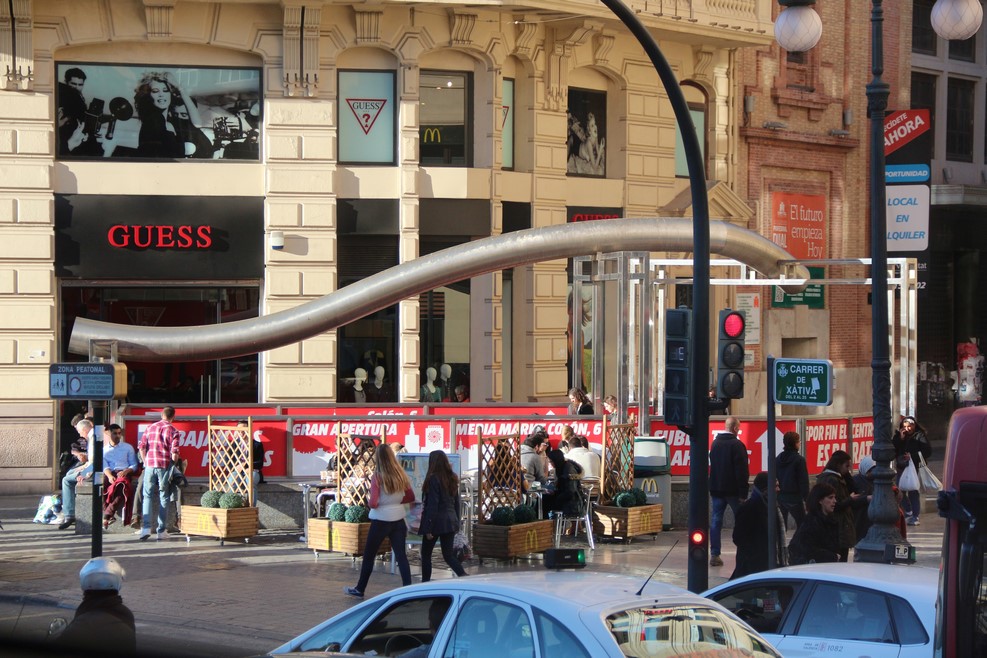 Все входы на центральные станции метро в Валенсии оформлены однообразно. Над входом висит овальная труба: