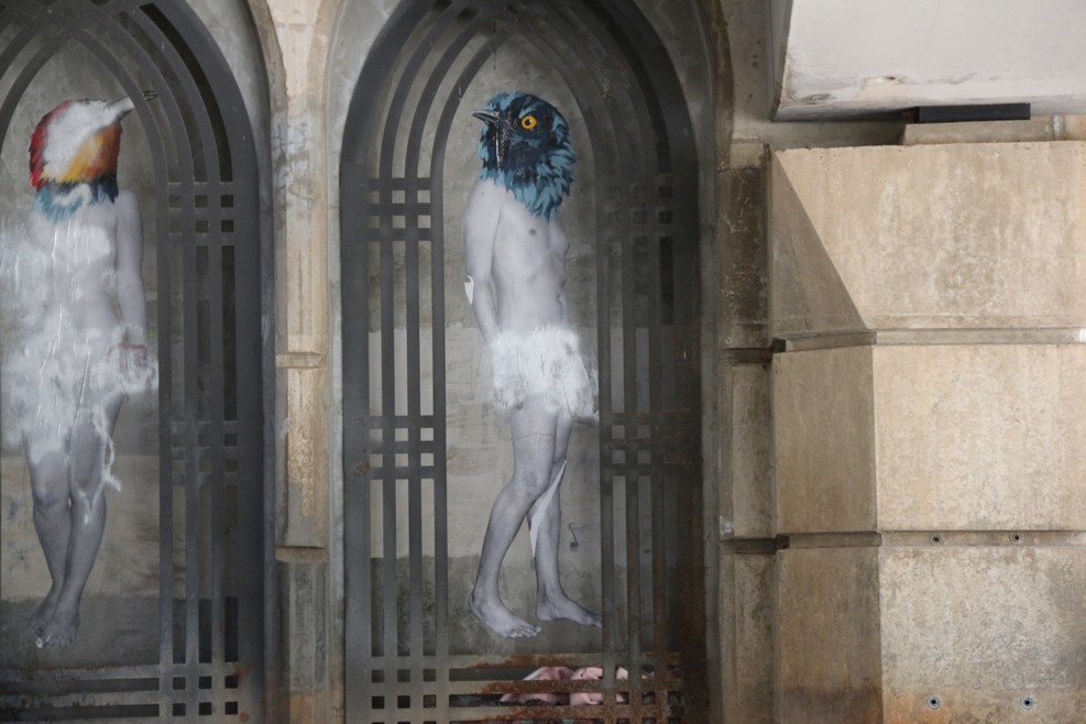 Вся похабщина в городе замалевана краской, а головы людей зарисованы головами птиц: