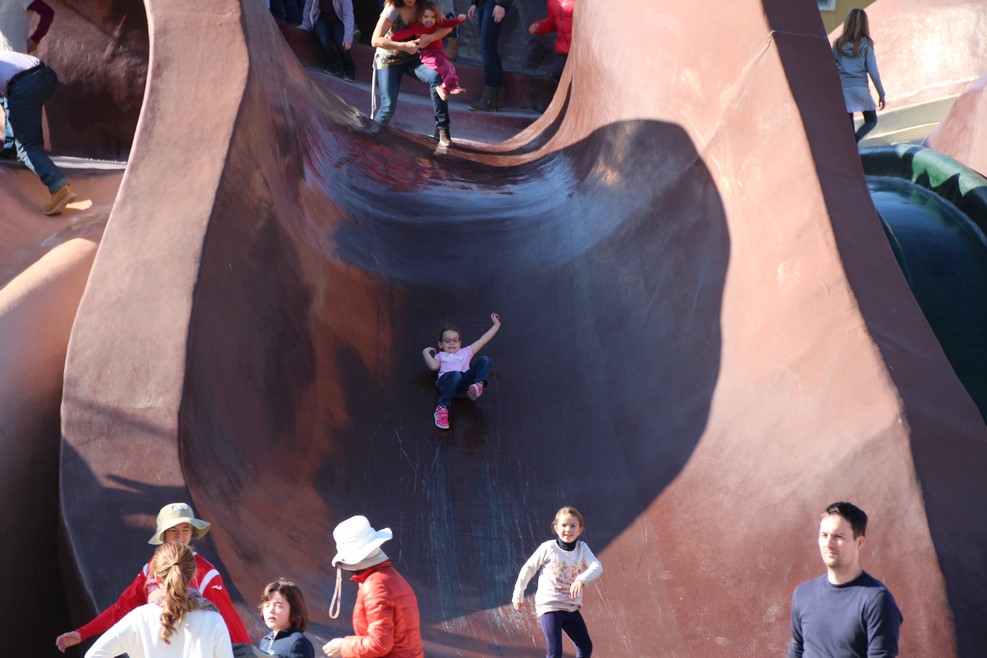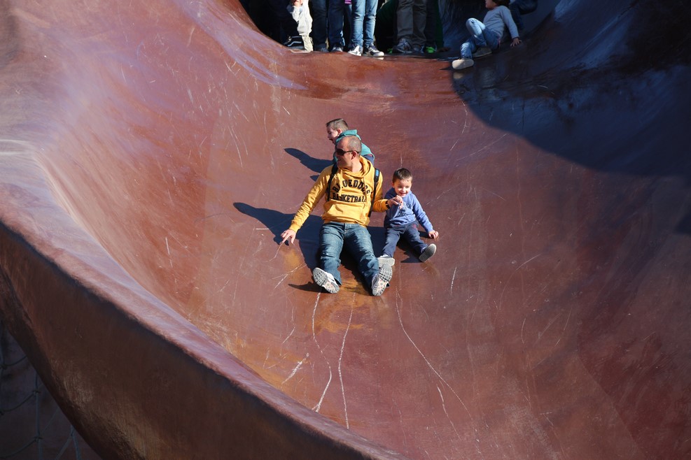 Дети с радостью катаются прямо со складок одежды Гулливера: