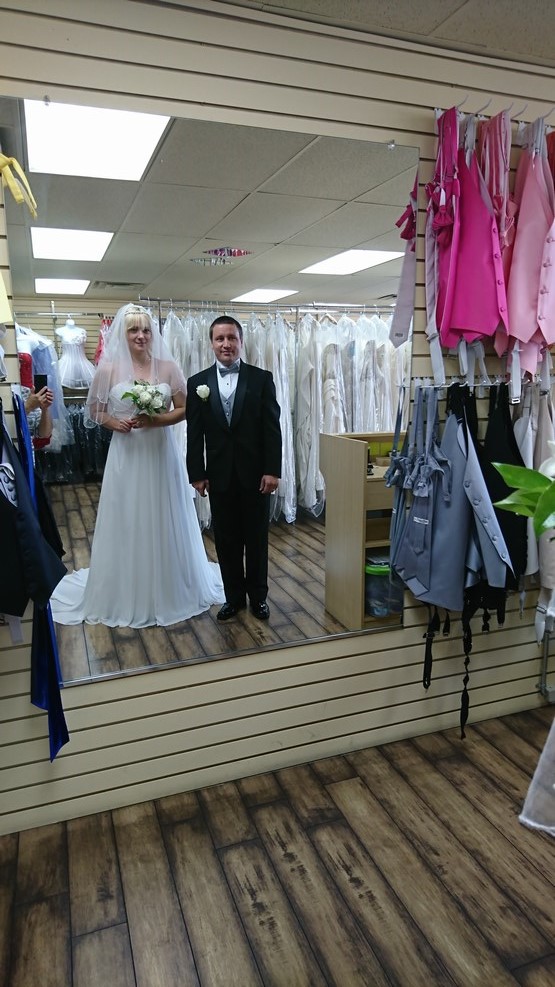 Продавцы очень удивлялись, когда мы говорили, что мы хотим провести бракосочетание на следующий день. Обычно платье американки ищут за полгода до свадьбы. Поэтому остановились мы на варианте простой аренды нарядов к торжеству. Это намного дешевле и быстрее: