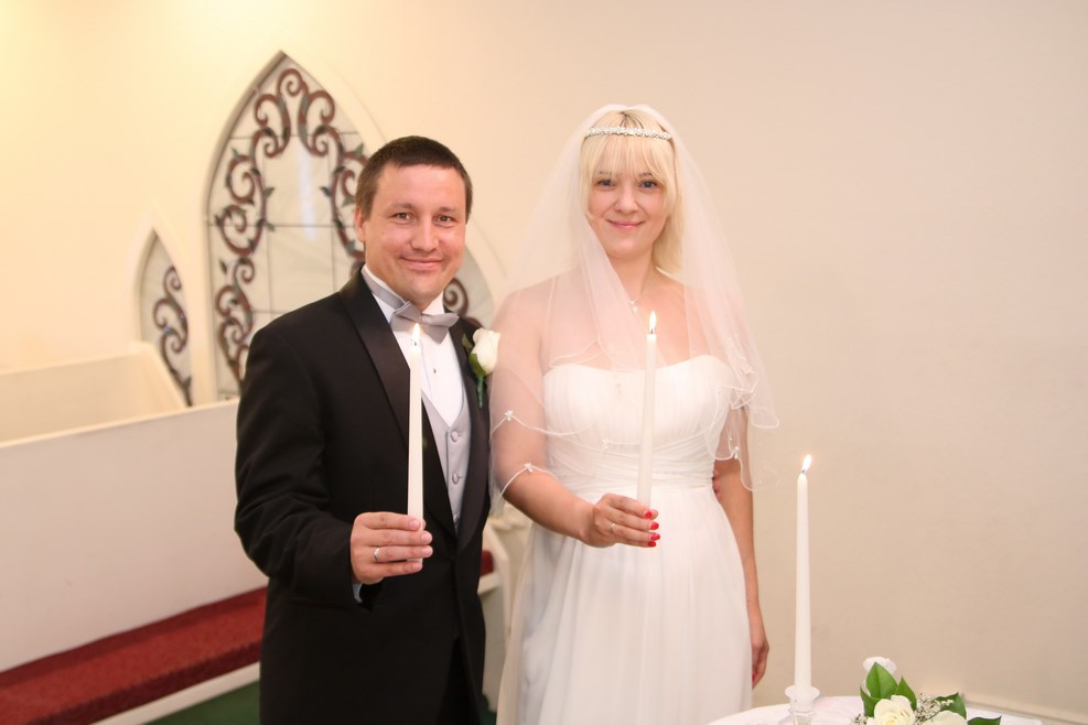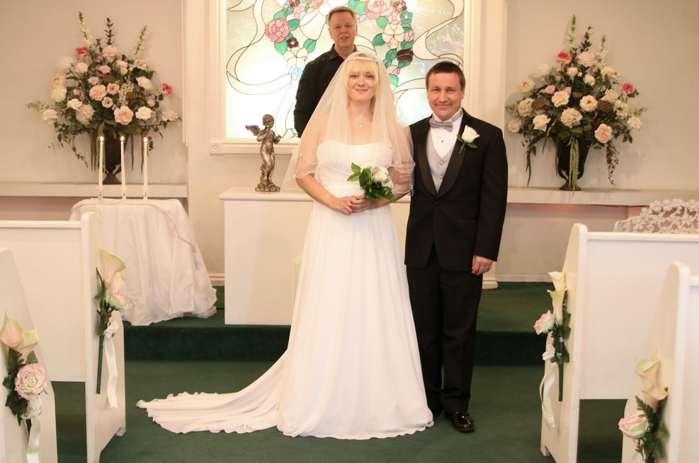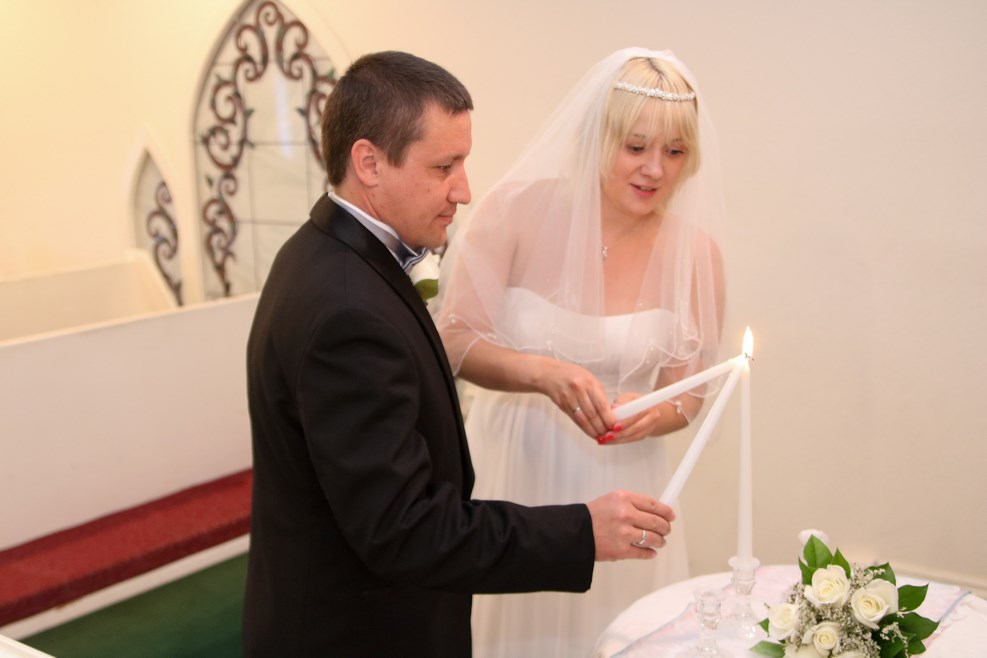 Наша церемония бракосочетания проходила в небольшой часовне в присутствии священника, который имеет специальную лицензию на проведение таких мероприятий: