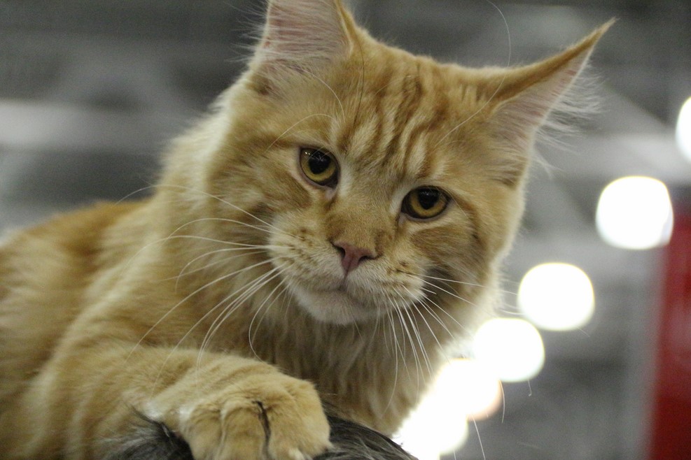 А этот наглый рыжий кот породы «мейн-кун» созерцал окрестности со своего хозяина: