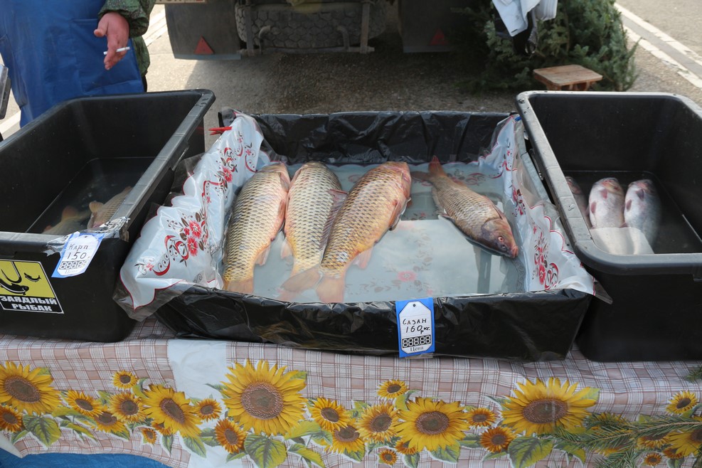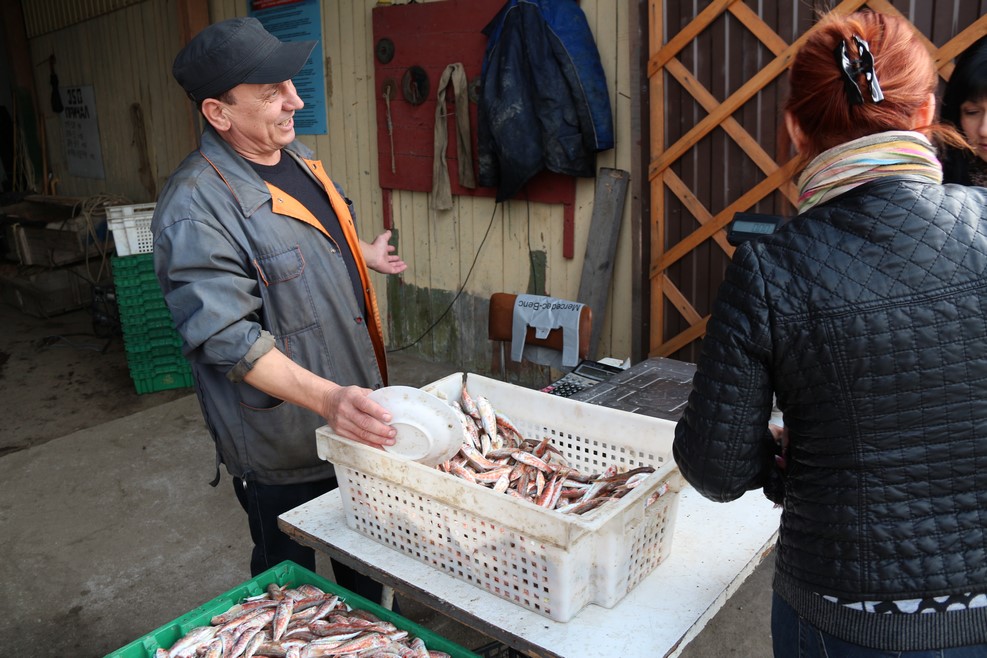 Если есть желание готовить, то никаких проблем нет. Вот к примеру, прямо на берегу моря продается «барабулька». Цена 300 рублей за килограмм: