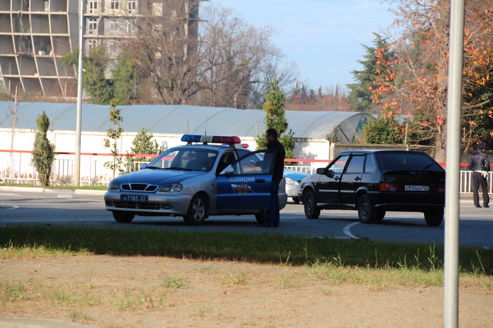На последней фотографии гаишники пасутся на своем любимом месте. Центр Сочи, вот они справа около большой надписи Police (рядом здание местного УВД):