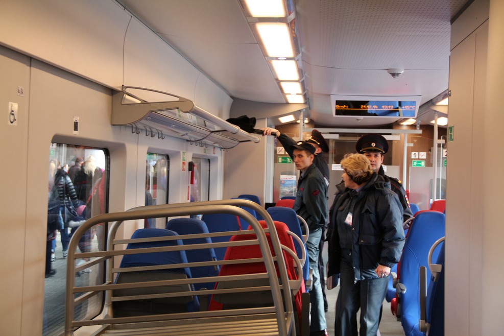 Двери расположены равномерно вдоль вагона, а не как у нас в обычной электричке по краям, из-за этого народ в вагон забивается равномерно. Чтобы осуществить вход и выход нужно нажать кнопку: