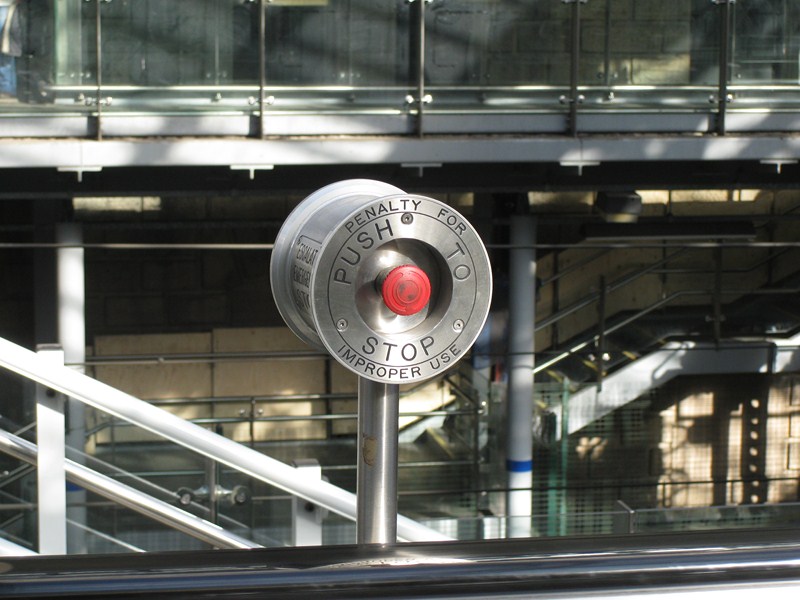 На эскалаторе кнопка отключения так и кричит «нажми на меня»: