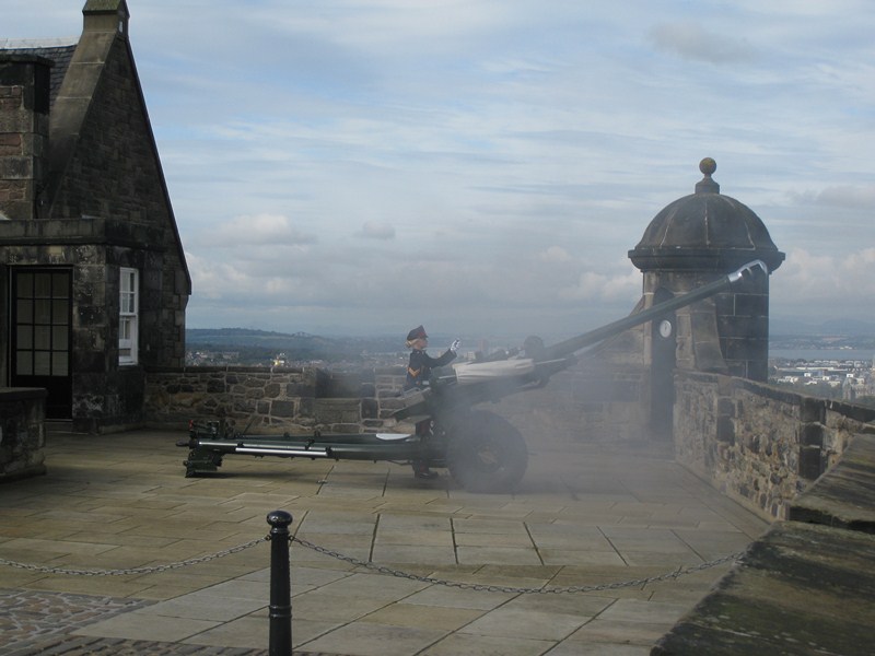В замке раз в сутки по рабочим дням ровно в час палит пушка. В момент выстрела: