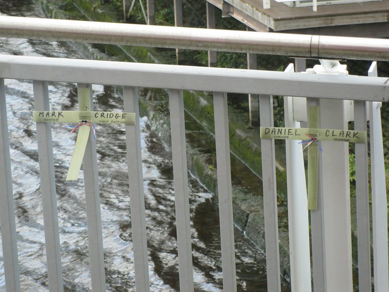 На мосту зачем-то висят кресты с именами: