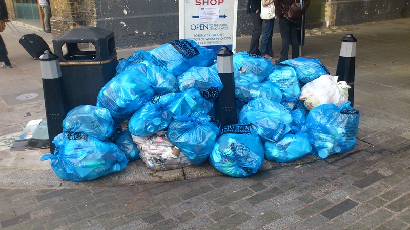 Если места в мусорке не хватает, лондонцы кладут его рядом: