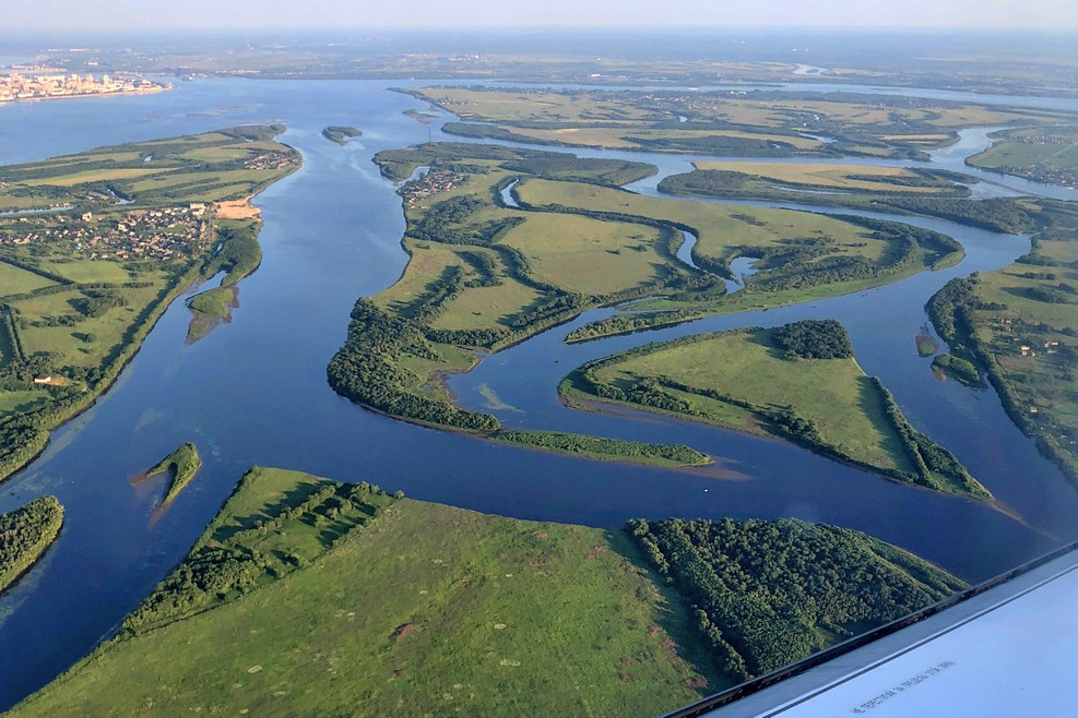 Приземляемся. С высоты полета отлично видно как широко раскинула свои рукава Северная Двина: