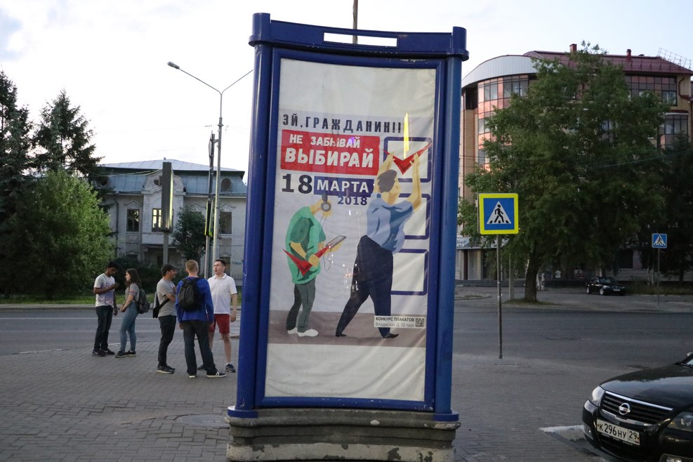 На дворе конец июля, выборы давно прошли, но плакат еще не сняли: