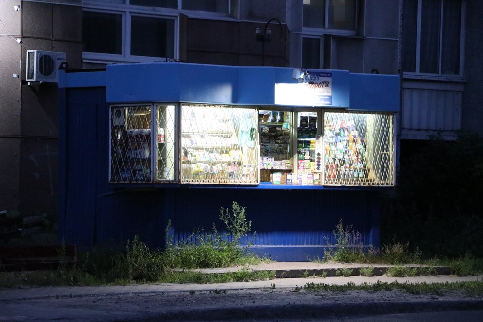 После недлительной прогулки идем домой на ночевку. Круглосуточный ларек:
