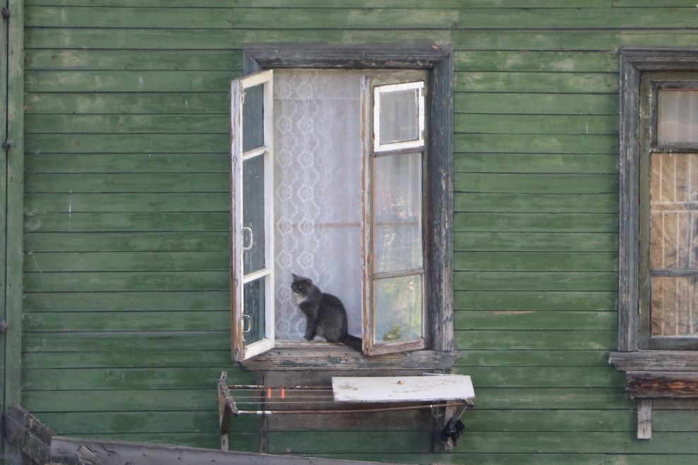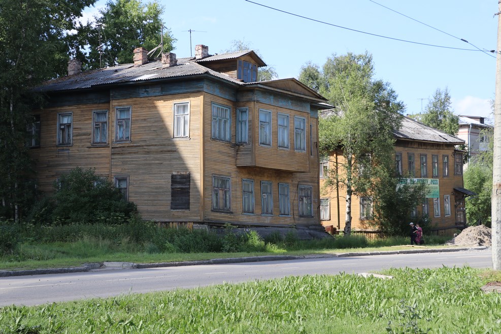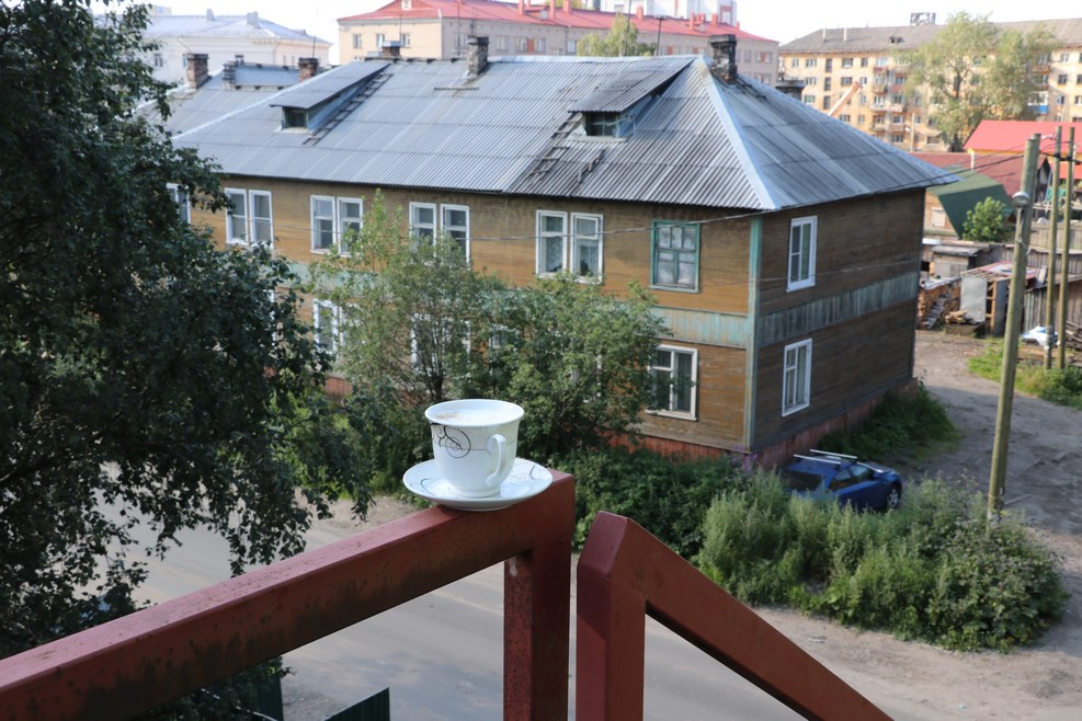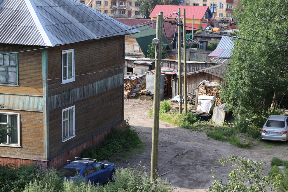 Из достопримечательностей города с пожарной лестницы был виден стандартный архангельский двор дома: