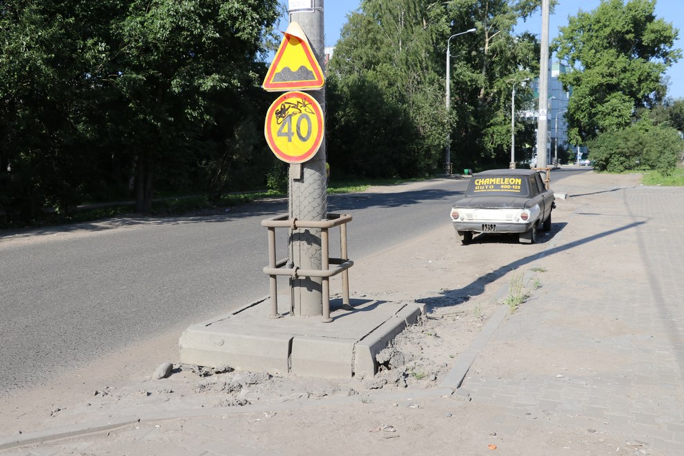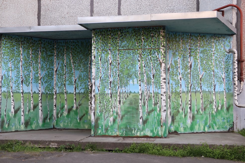 Еще местная особенность – столбы в сетке (чтобы не клеили объявления), которые закрыты по периметру железным ограждением. Думаю сделано это для того, чтобы пьяный тракторист не снес столб во время уборки снега: