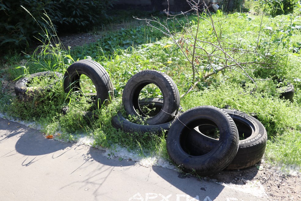 Покрышки тут используют часто. К примеру, для отделения лужайки от тротуара: