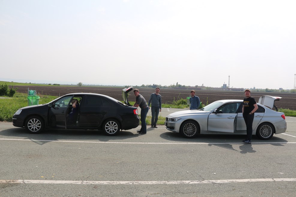 На привале. Лешка что-то тырит из багажника джетты: