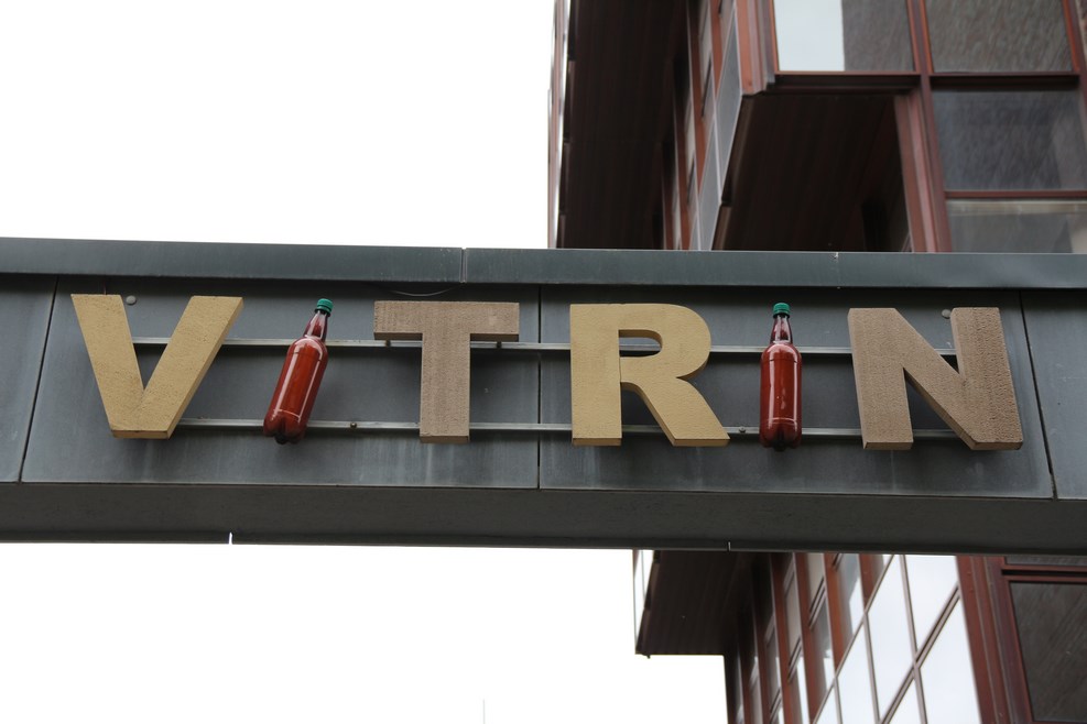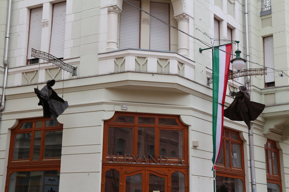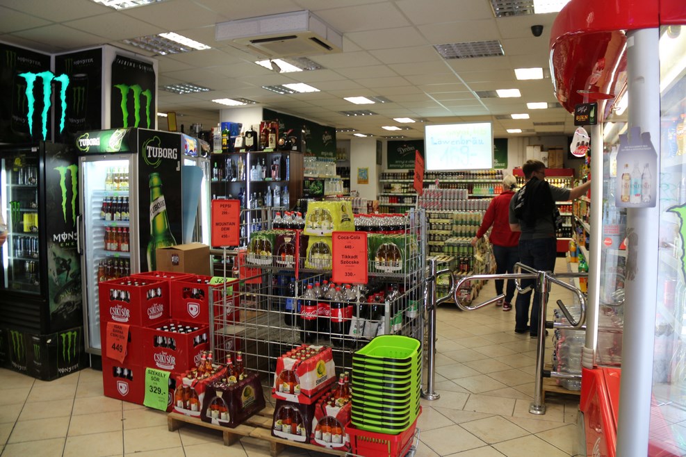 В Венгрии алкоголь продают в отдельных магазинах, вход в такой магазин. Малой ждет кого-то из взрослых у входа: