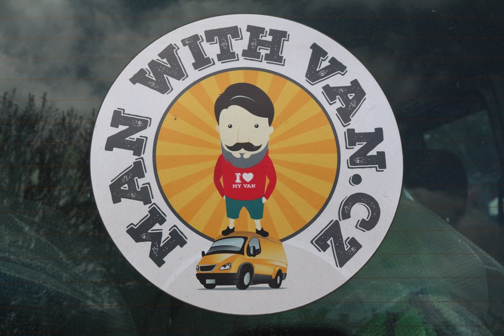 Посмотрели центр и пошли к нашим запаркованным машинам. Рядом с ними стоял фольцваген мультивен с наклейкой сайта владельцев мультивенов. Но уж больно машина на наклейке напоминает газель, а не фольцваген: