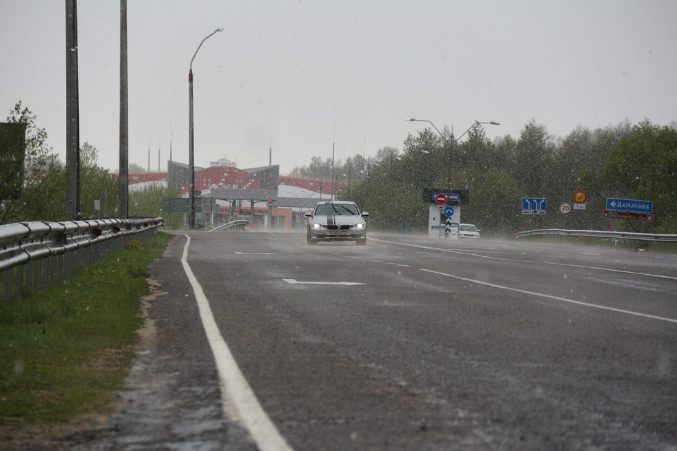 После пересечения границы Белоруссия встретила нас сильным снегопадом: