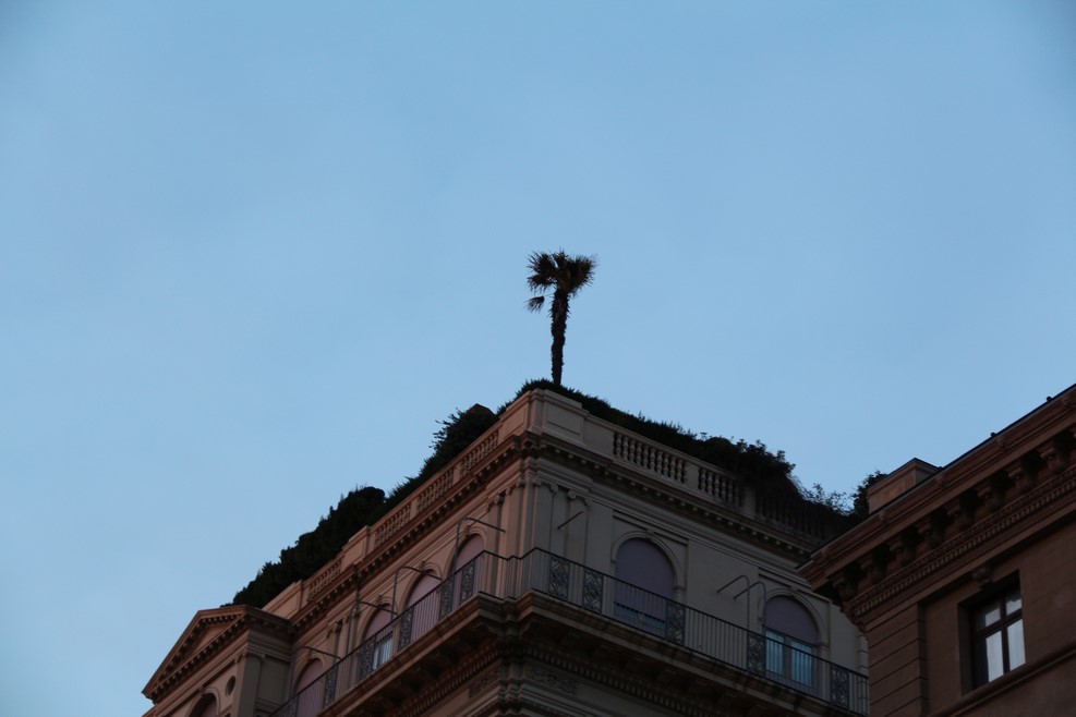Оглядимся вокруг. Увидим пальму на крыше: