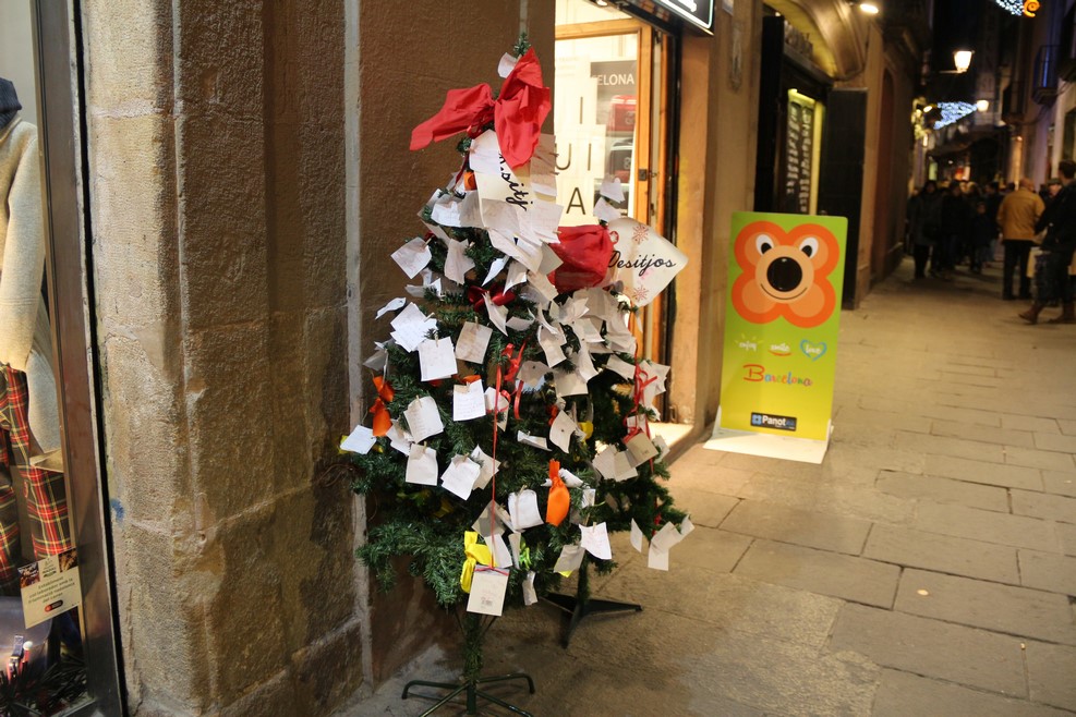 На елки в Барселоне вешают пожелания на следующий год: