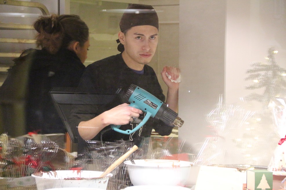 Многое производство традиционно по-европейски выставлено на показ. Вот чувак только что обычной дрелью месил шоколад: