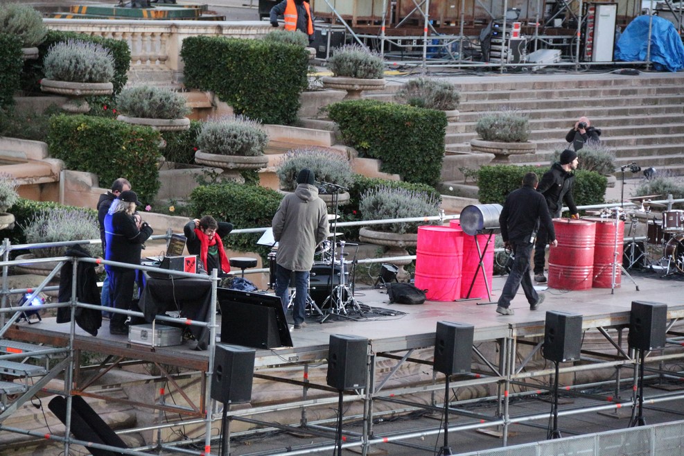 На площади около музея музыканты настраивали свои инструменты для новогоднего выступления: