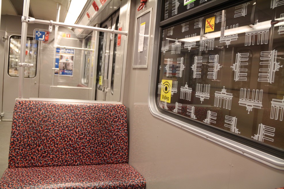 Метро Берлина порадовало цветастыми сидениями и окнами обклеенными пленкой с изображением Бранденбургских ворот: