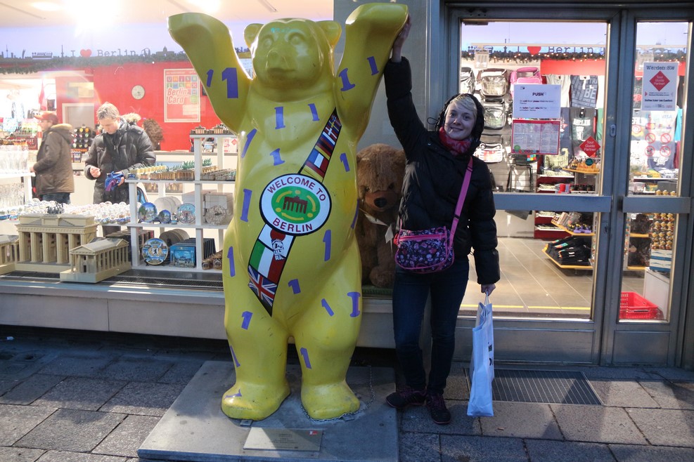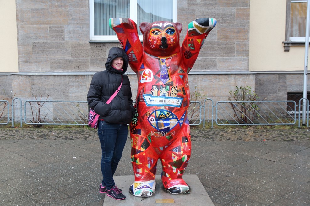 Выйдем из пивной и немного прогуляемся по Берлину. Берлинские медведи, Олька не пропустила не одного: