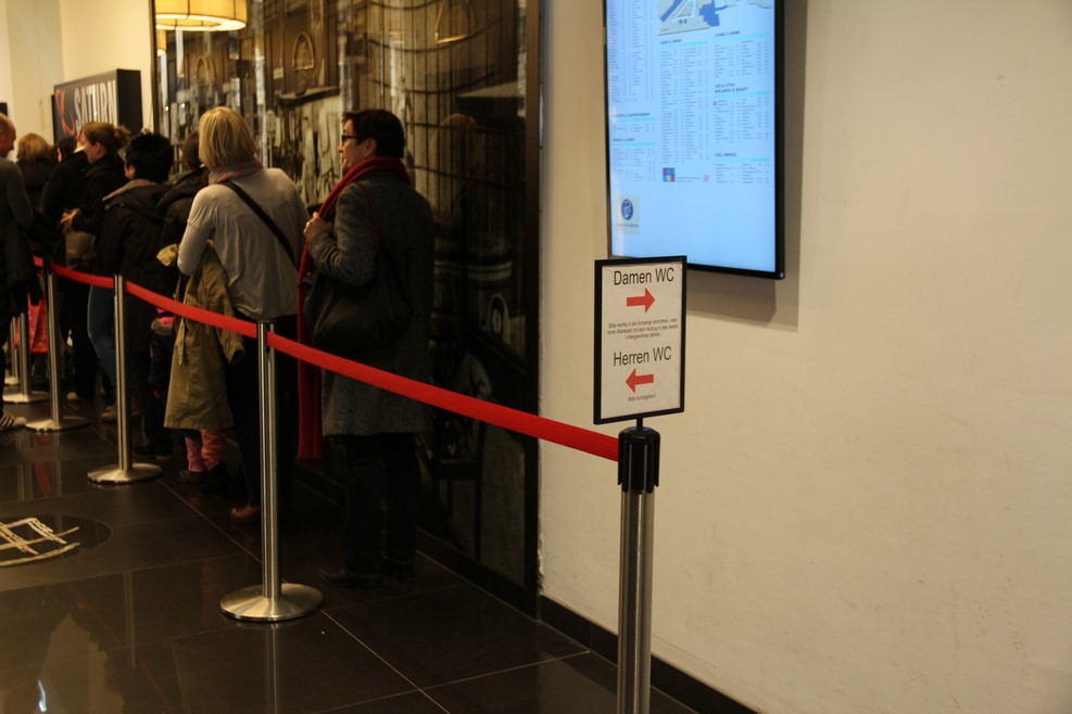 Вселенская несправедливость. В туалет дамы встают справа в очередь, а херрен идут слева без очереди: