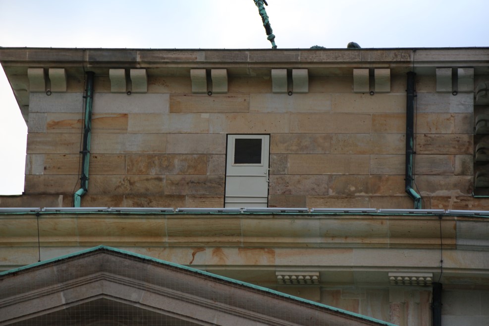 На Бранденбургских воротах я обнаружил потайную дверь (щелкните по фото, чтобы рассмотреть поближе):