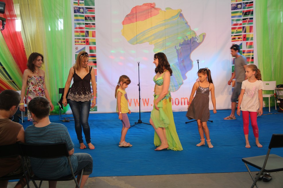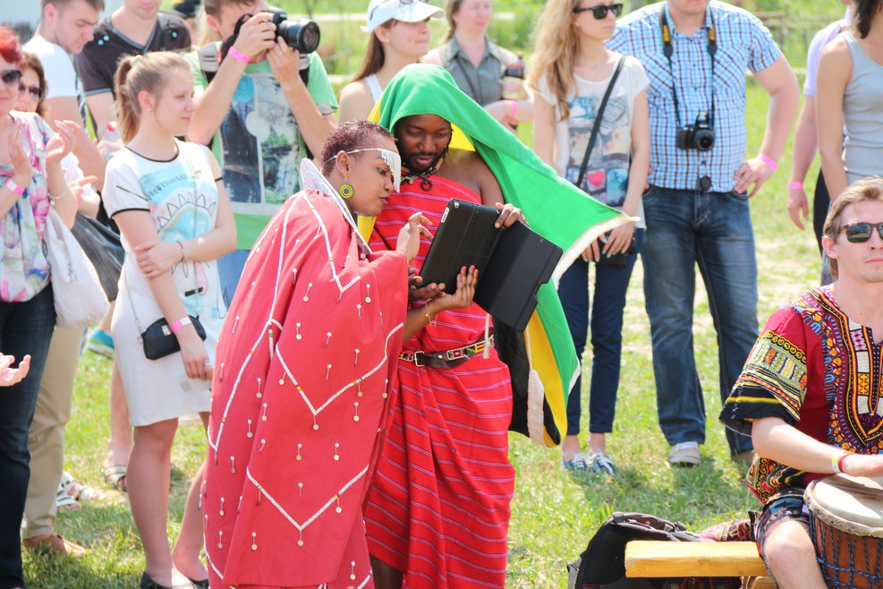 Рядом сидят артисты, которые в этот день будут участвовать в фестивале африканской культуры: