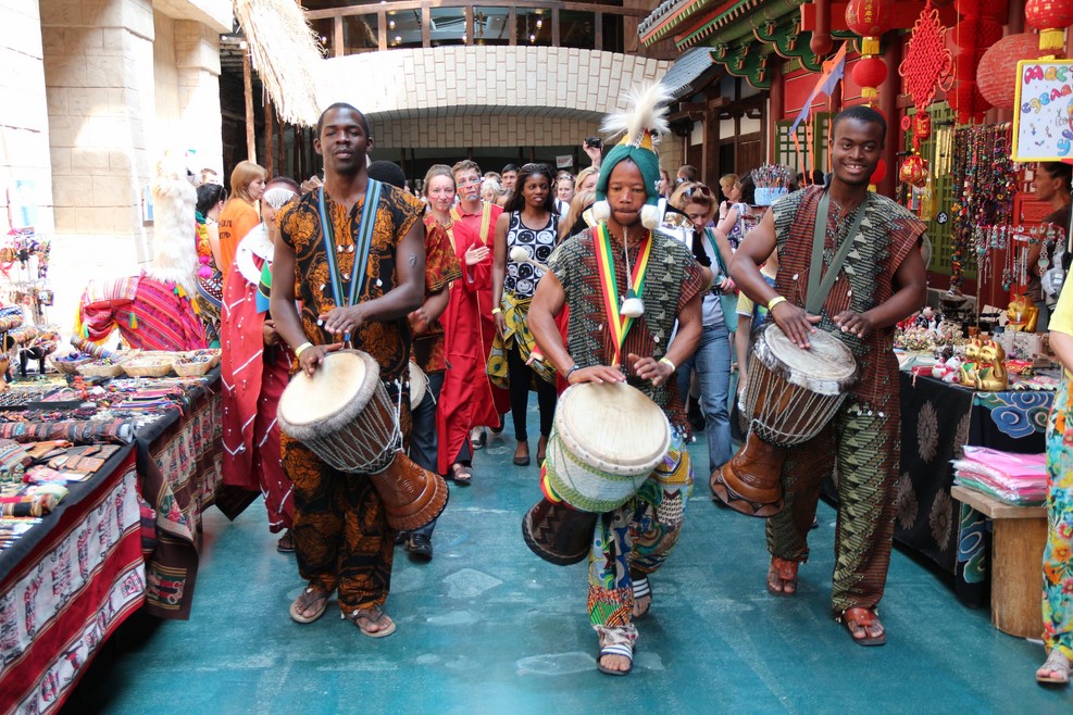 Под звуки барабанов все вышли на улицу. Музыканты-африканцы: