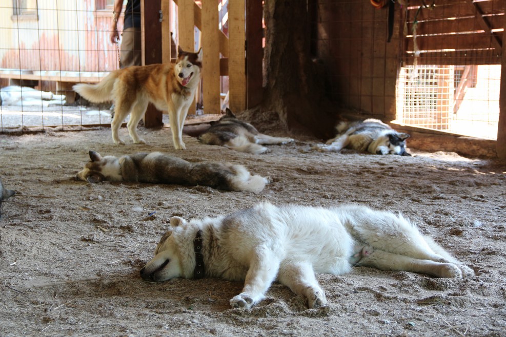 Наибольшее количество посетителей, без сомнения, находятся у вольера с сибирскими хасками: