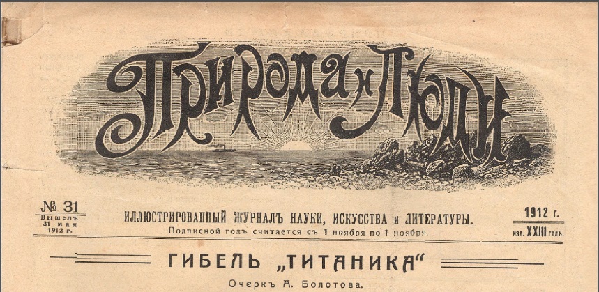 … прислал мне мой студенческий одногруппник. По ссылке вы можете скачать файл PDF. В файле газета «Природа и Люди» от 1912 года, сообщающая о гибели «Титаника» всего через несколько недель после самого события: