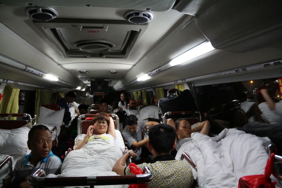 В город мы добирались на ночном автобусе со спальными местами. Ощущения от поездки как будто тебя живьем везут на катафалке. В салоне при посадке: