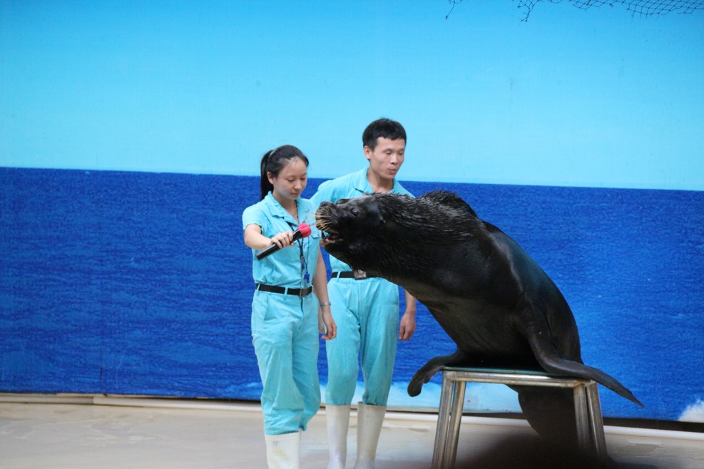В конце экспозиции показывают небольше представление с тюленем: