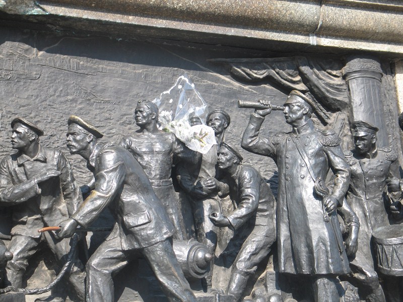 На памятнике Нахимова солдаты бежали брать очередной оплот врага, но самый умный бежал по бабам: