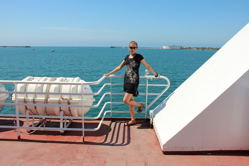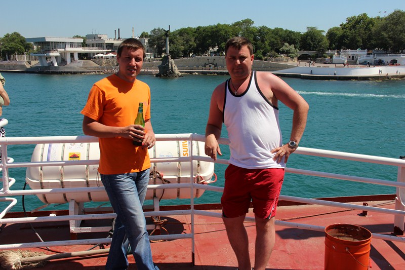Ехали через Севастополь. В город мы попали через паром. В ожидании парома: