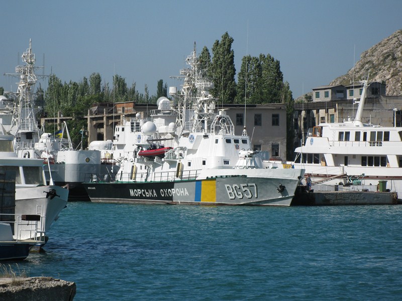 В Балаклаве когда то располагалась база для ремонта подводных лодок. Напротив входа в доки располагаются корабли украинских пограничников: