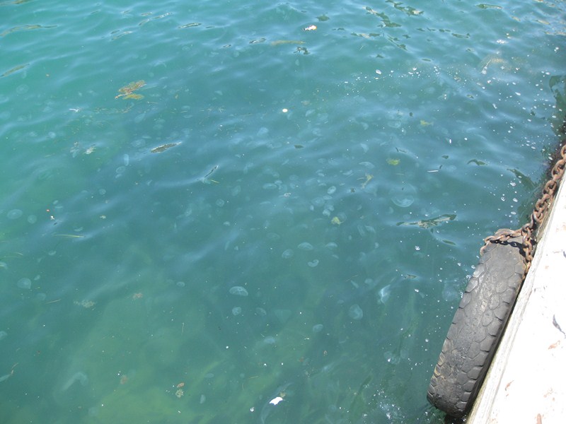 Около причала в воде много медуз: