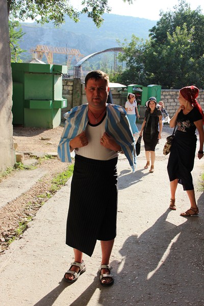 В монастырь нельзя проходить в шортах, с голыми плечами. Женщинам нельзя ходить в брюках и с непокрытой головой: